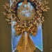 A Handmade fabric hanging bow made in Green, Cream and Gold gingham.