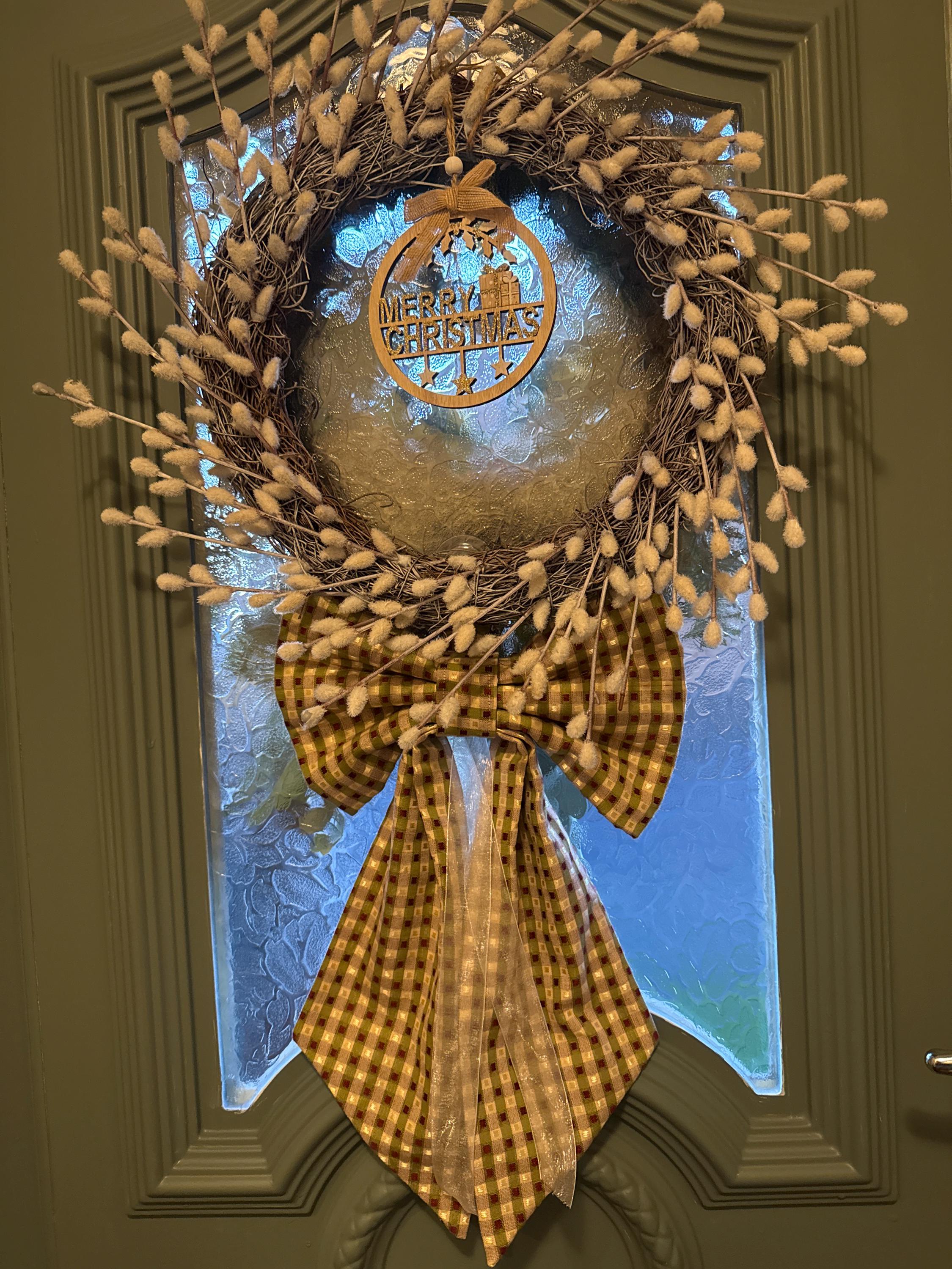 My bows come in Red gingham, Green gingham, Natural gingham, Red and gold gingham and Green and gold gingham in other listings.
