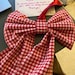 Beautiful red gingham bow, stunning and so happy! It arrived so quickly and lovely card with my purchase. Thank you x 🫶